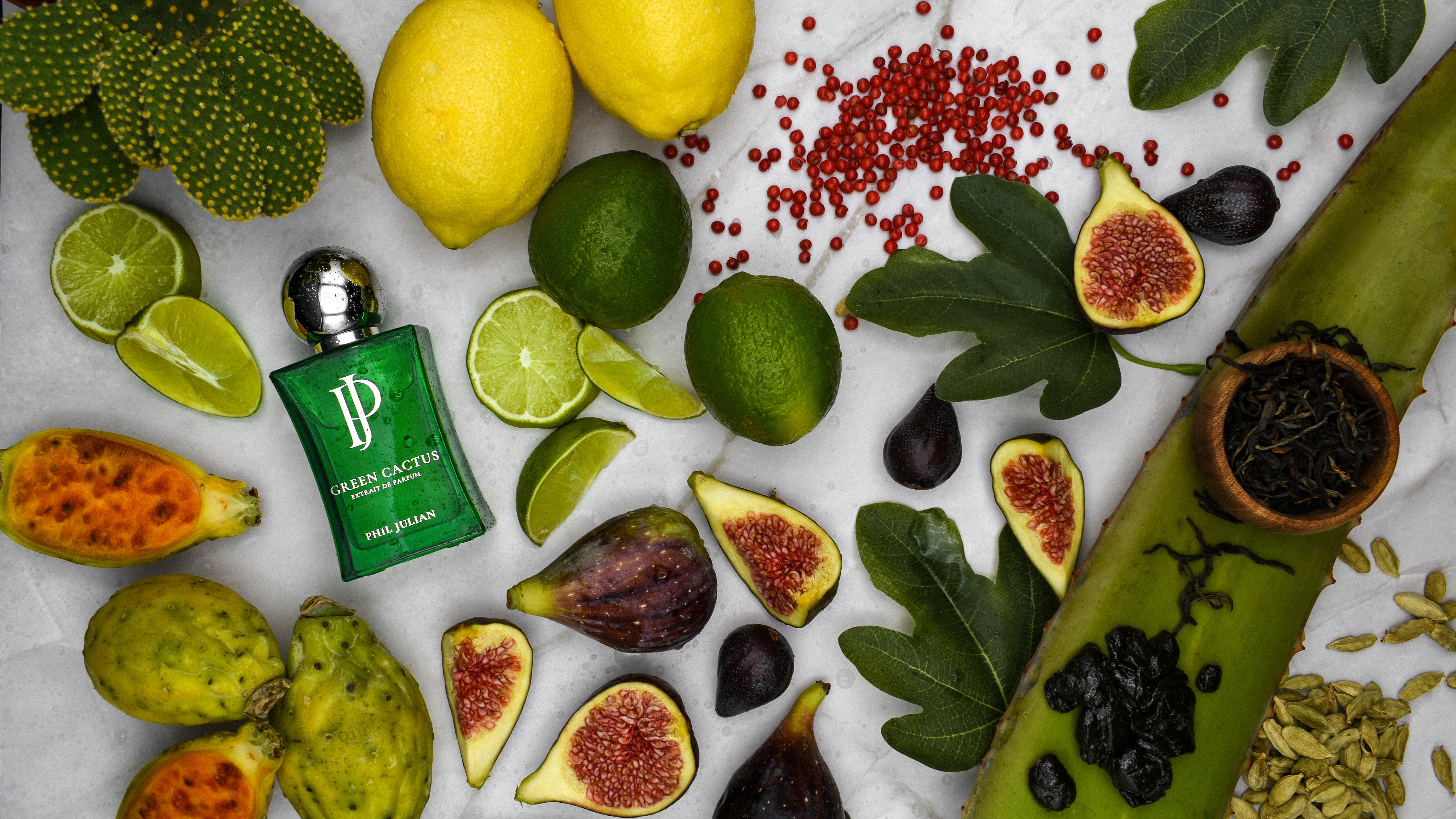 Green Cactus ist ein energiegeladener, moderner Duft mit zitrisch-herbem Auftakt. In der Kopfnote treffen spritzige Bergamotte, Zitrone, Kaktusfeige und die frische Yuzu aufeinander. Das Herz wird fruchtig grün mit rotem Pfeffer, Minze, grünem Tee, Feige, Kaktus, Aloe Vera und Kardamom und erinnert an die saftige Vegetation der Insel. In der Basis wird Green Cactus cremig holzig. Zedernholz, Patchouli, Amber, Labdanum und Moschus verleihen Wärme, Tiefe und elegante Langlebigkeit.